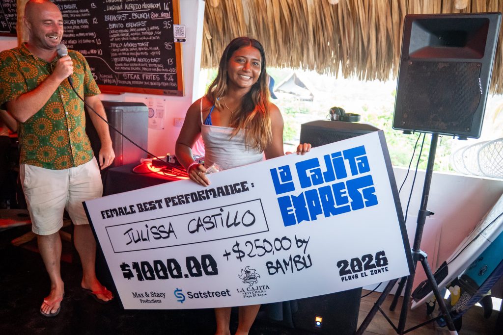 El torneo de surf «La Cajita Express» se llevó a cabo en la playa El Zonte, en el departamento de La Libertad, El Salvador, reuniendo a los mejores surfistas del país. En la categoría masculina, Bryan Pérez se consagró como el gran ganador al dominar los tres primeros lugares, gracias a su destacado desempeño en maniobras aéreas y combinaciones, llevándose un premio total de $3,750.