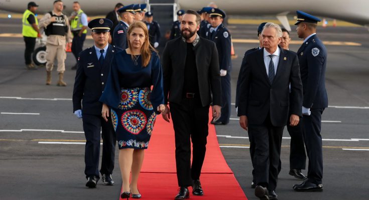 #ÚLTIMAHORA | El Presidente @nayibbukele y su Comitiva Oficial fueron recibidos por la Vicepresidenta @drmarymunive, el Ministro de Relaciones Exteriores y Culto, @arnoldoandre, Arnold Zamora Miranda, Ministro de Comunicaciones y Michael Chartier, Director de Protocolo del… pic.twitter.com/bJ0LoGiY4A